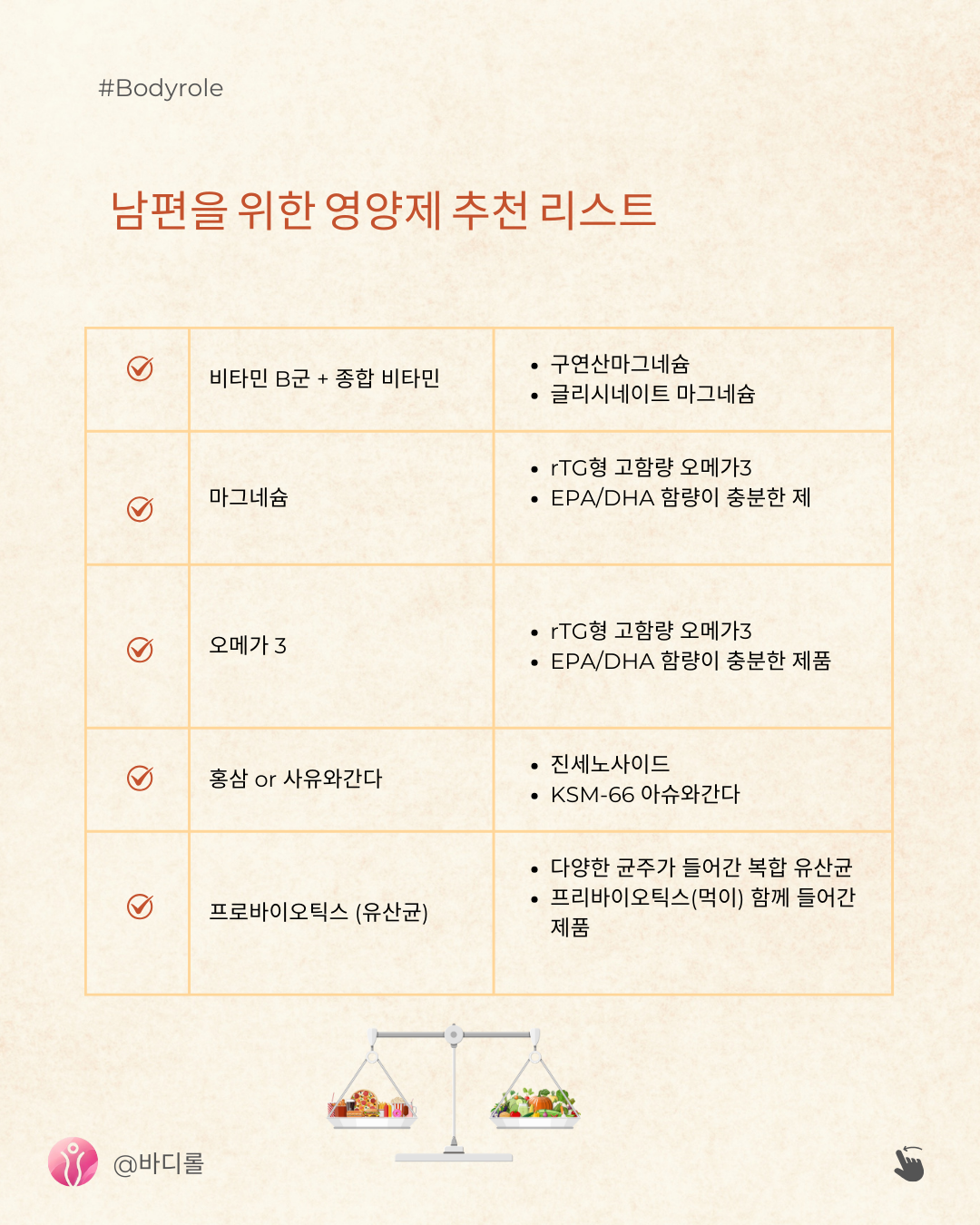 남편 건강이 곧 가족 건강! 지금 챙겨야 할 영양제와 식단