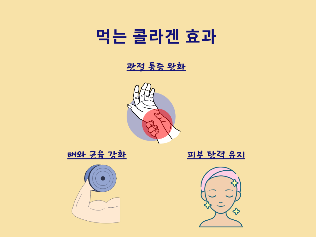 콜라겐은 피부, 뼈, 결합 조직의 건강에 중요한 역할을 합니다. 관절을 튼튼하게 하고 피부를 탄력 있게 유지하며, 장기 보호와 같은 다양한 기능을 수행하죠. 쉽게 말해, 콜라겐은 우리 몸을 '결합'시키는 역할을 합니다.