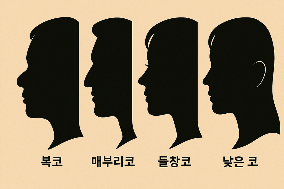 - 매부리코: 콧등 중간이 살짝 튀어나온 형태로, 옆모습에서는 강하고 날카로운 인상을 주는 경우가 많아요. 부드러운 인상을 원할 때 이 부분을 다듬고 싶어하는 분들도 많다고 해요.
